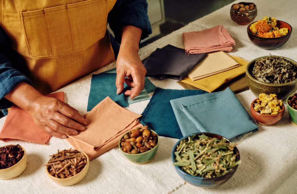 One of our most asked questions is how to use a natural dye or a pigment as a paint on textiles. While there are many methods, John is the OG of fresh soymilk application, having introduced it to us decades ago when he was creating his art-to-wear garments. It is the perfect medium to bind plant, insect and mineral pigments to fabrics. The results are lush, beautiful, classic techniques and colors. The imagery and colors are reminiscent of antique Japanese textiles that you can find hidden in a corner of John’s huge warehouse collection.